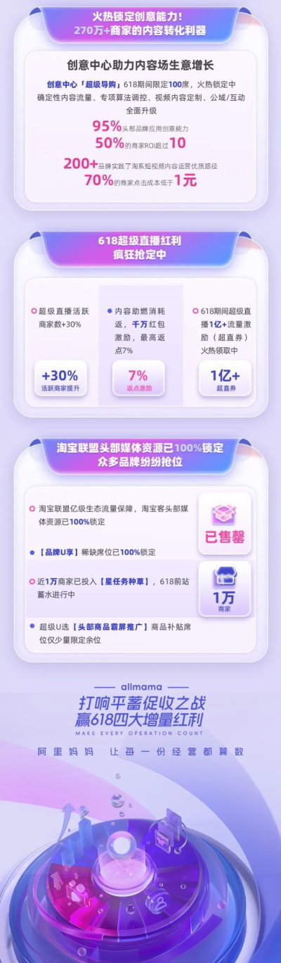 由此可見,進入全新的618平蓄促收周期後,阿裏媽媽順應品牌商家對淘系“生意新增量”機會的期待,爲商家准備了各種維度的新增量紅利,並融合了長期以來的能力體系建設和方法論。在有限資源更加激烈的爭奪中,我們對618的生意確定增長,充滿期待和信心。