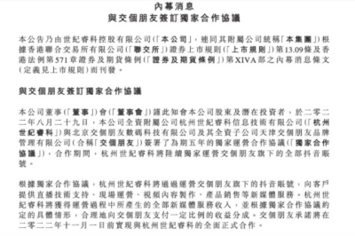 在完成收購之際,世紀睿科發布公告,已獲得“交個朋友”的核心IP,並且將全部账號收入囊中。與此同時,世紀睿科擬更名爲“交個朋友控股有限公司”。