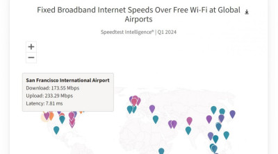 在Wi-Fi下載速率方面,尤以美國舊金山機場表現最佳、以高達173.55 Mbps居全球之冠。第二至五名依序為:紐澤西紐瓦克國際機場(166.51 Mbps)、紐約約翰甘迺迪國際機場 (151.59 Mbps) 、亞利桑那州的鳳凰城天港國際機場 (151.28 Mbps)、西雅圖塔科馬國際機場 (137.31 Mbps)。