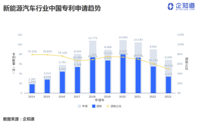 中國新能源汽車企業的快速發展,離不开對技術創新的不懈追求。企知道顯示:目前中國新能源汽車專利總量已達到8.4萬件,佔全球新能源汽車專利總量的近30%,而這主要得益於新能源汽車市場的快速發展和技術創新的推動,在2020年達到最高點1萬件。