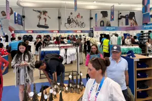 巴黎奧運紀念品旗艦店座落於香榭麗舍大道,鄰近舉辦擊劍、跆拳道的巴黎大皇宮,以及將舉辦滑板、3x3籃球和街舞項目的協和廣場。在看比賽之餘,遊客可以順道前往旗艦店選購紀念品,而今日旗艦店現場已經大排長龍。