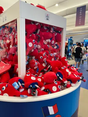 據了解,超過300坪的旗艦店店內販售超過1000種官方授權紀念品,從最便宜5歐元(約合178元新台幣)的筆、吊飾,到800歐元(約合28462新台幣)的奧運吉祥物Phryge的巨型絨毛玩偶,還有各式各樣的紀念衣服,遊客進店一趟,平均消費至少150歐元(約合5336元新台幣)。