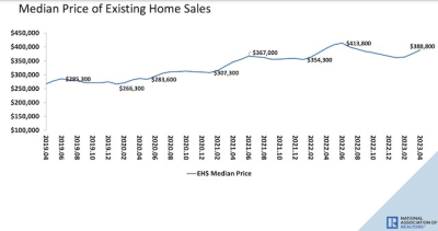 全美成屋房價中位數走勢(圖源:美國房地產經紀人協會)