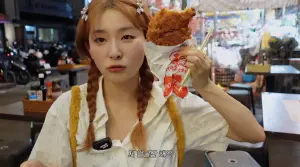 ▲瑟琪到了夜市之後,也喫了各式各樣的在地小喫,包含了雞排、蛤蜊湯、香腸、海鮮麵等,她還不忘大力稱讚雞排,更直呼「雞排是首選」,推薦所有南韓的歌迷有到高雄的話,一定要喫看看雞排。(圖/瑟琪Youtube)