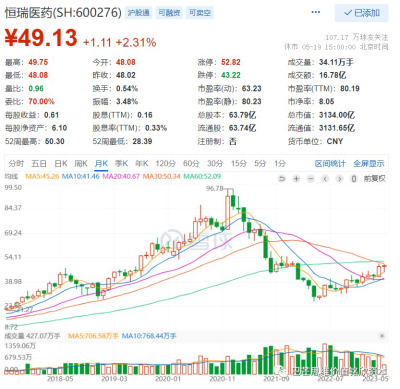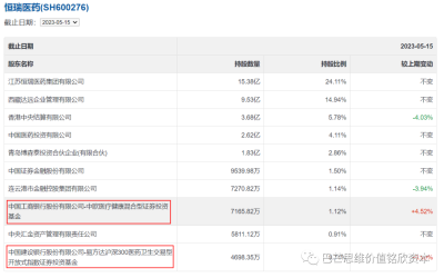 截止一季度末,恆瑞醫藥爲中歐醫療健康第六大重倉股,持倉市值爲29.36億元,而以5月19日收盤價49.13元計算,該基金持有恆瑞醫藥市值已達35.2億元。