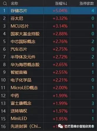 5月19日電,大盤全天走勢分化,滬指衝高回落小幅下跌,創業板指震蕩反彈。盤面上,半導體板塊全天強勢,恆爍股份、長光華芯20CM漲停,睿能科技、德明利漲停。LED概念股震蕩走強,芯瑞達漲停,艾比森漲超9%。消費電子概念股盤中活躍,智動力20CM漲停,惠威科技、美格智能漲停。中藥股盤中衝高,貴州三力漲停,太極集團再創歷史新高。下跌方面,AI概念股陷入調整,應用方向領跌,榮信文化、凱淳股份跌超10%。總體上個股上漲和下跌家數基本相當。滬深兩市今日成交額8480億,較上個交易日縮量319億。板塊方面,存儲芯片、半導體、智能音箱、中藥等板塊漲幅居前,教育、傳媒、CPO、ChatGPT等板塊跌幅居前。截至收盤,滬指跌0.42%,深成指漲0.12%,創業板指漲0.03%。北向資金全天淨賣出22.26億元,其中滬股通淨賣出22.43億元,深股通淨买入0.17億元。(來自財聯社APP)