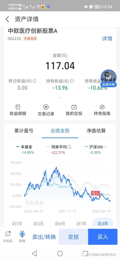 葛蘭最爲大家所知的是這二只基金:中歐醫療健康混合、中歐醫療創新股票。 二只我也买了,幸好當時只是試探性關注避免遺忘的小买了100元或者200元。一直關注下來,基金業績表現不佳,也沒有追加大的建倉买入。