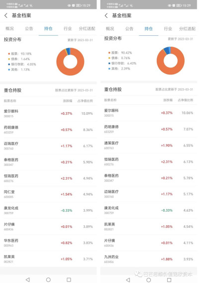 中歐醫療健康混合 十大持倉股 PK 中歐醫療創新股票 十大持倉股