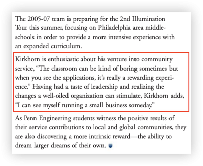 2006年,他對校刊《賓大工程》(Penn Engineering) 表示:
