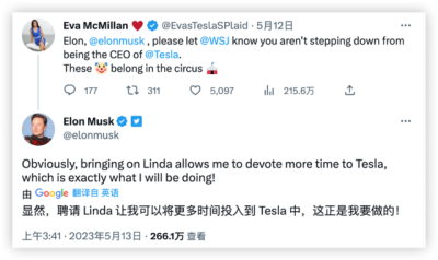 买下推特這件事兒給馬斯克帶來了一些官司、非議和投資者的不滿,一些人把特斯拉股價下滑歸咎於馬斯克分心管理推特。在持續半年996式的勞作、對這家社交平台進行大改之後,馬斯克終於爲推特找到了一位理想的繼任者,5月13日,推特迎來了新的CEO,一位曾在NBCuni工作的廣告人,而馬斯克自己則會轉任CTO,繼續負責產品、軟件和平台。