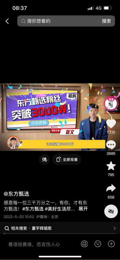 標題:5月20日東方甄選抖音直播間GMV8800,大號7567,美麗生活815,自營2