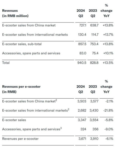 對此,該公司8月12日發布的財報就有一些相關體現。據財報數據,2024年第二季度,小牛電動實現營收9.405億元,同比增長13.5%;淨虧損2490萬元,2023年同期淨虧損190萬元。