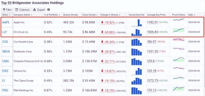 橋水二季度大幅砍倉蘋果、禮來 圖片來源:Hedgefollow