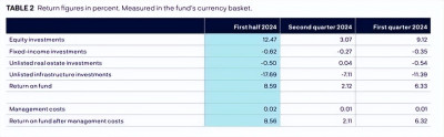 上半年,這家巨無霸的利潤爲1.48萬億克朗(約合1380億美元),主要受科技股投資強勁回報的推動。截至6月底,其市值達到17.75萬億克朗,前6個月的總體回報率爲8.6%,比基准指數的回報率低0.04個百分點。其中,股票投資組合今年上半年的回報率爲12.5%。
