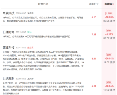 行情上,智能制造、機器人多股漲停。