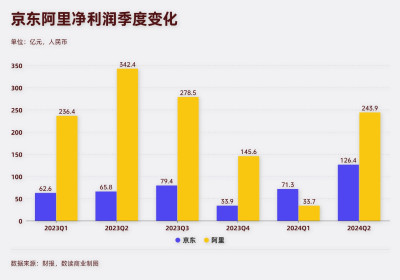 同期的阿裏,本季度淨利潤244億,同比下滑29%,已經連續三個季度大幅度下滑。與之相比,京東本季度淨利潤126億,同比大幅增長92%。這是京東首次單季度利潤破百億,創下了歷史新高。