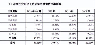 也就是說,即便在疫情期間,威高血淨的業務招待費仍保持在每年六七千萬水平。總體來看,報告期內,威高血淨銷售費用率遠高於同行業可比上市公司平均值。