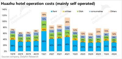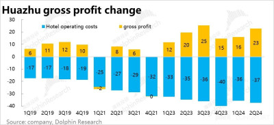 具體來看,各項成本支出佔華住自營業務的比重基本都同比持平,換言之,都是同比略增的自營收入和成本大體相互對衝,增量的加盟業務收入則大體轉化爲了增量的毛利。