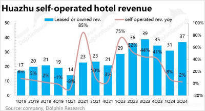 隨着酒旅景氣度的走低,本季度華住集團整體營業的增速繼續放緩到了 11%,相比市場預期多出 1.1 億。不過因爲收入口徑不同,門店數減少的自營業務收入的重要性被過於放大。
