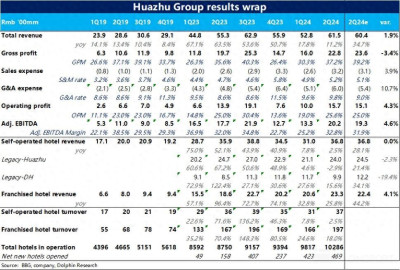 北京時間 2024 年 8 月 20 日美股盤前,華住(1179.HK/HTHT.O)發布了 2024 二季度財報。概括來看,華住此次各財務指標普遍稍好於預期,但業績繼續指向着走淡的酒旅需求,具體來看: