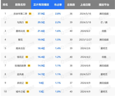 在其爆款方法論中,越發強調“閱文集團X新麗傳媒X騰訊視頻”三駕馬車協同的生態效應。財報專門提到,“2024 年上半年,在中國在线視頻平台上收視率最高的三部電視劇中,前兩名均由新麗傳媒制作,騰訊視頻播出,三部都是基於閱文集團的小說 IP 改編。”