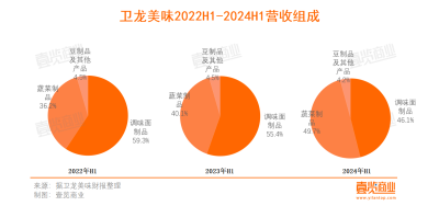 其中,調味面制品營收佔比從2022年H1的59.3%降低至2024年H1的46.1%,蔬菜制品的營收佔比則從2022年H1的36.2%上漲至2024年H1的49.7%。