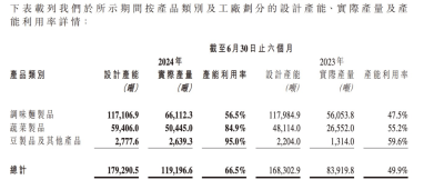 可以看到,衛龍的蔬菜制品、豆制品及其他產品的產能已接近飽和,分別是84.9%、95%。調味面制品雖然較2023年同期有增長,但仍只有56.5%的產能利用率。
