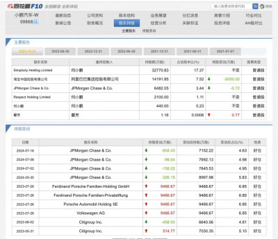 此次增持後,何小鵬於Simplicity Holding所持有公司約3.28億股B類普通股及220萬股美國存托股,以及Respect Holding所持有公司2100萬股B類普通股中擁有權益,合共持股比例爲20.5%。且何小鵬該持股比例直至去年一季度底皆並未發生改變。