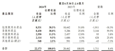 財報顯示,2024年上半年農夫山泉飲料產品收益同比增長36.7%。其中,茶飲料同比增長59.5%。