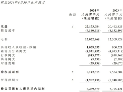 8月27日,農夫山泉發布了2024年中期業績公告。公告顯示,上半年農夫山泉整體營收221.73億元,同比增長8.4%;母公司擁有人應佔期內溢利62.4億元,同比增長8.05%。