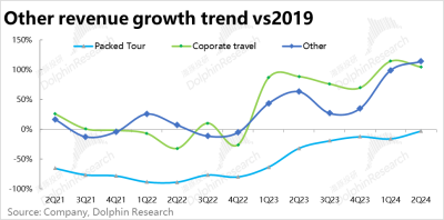 1) 商旅業務相比19年同期增長約105%,較上季的115%略有放緩。作爲公司主要發力的新業務,商旅業務的體量較疫情前已經翻倍,本季度放緩的幅度也不算很大,可見商旅的需求彈性相對弱些。