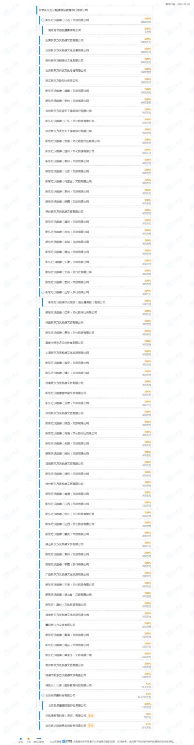 自成立以來,新東方文旅全資持股了北京新東方沃凱德國際教育旅行有限公司和新東方(江蘇)文旅投資有限公司,並通過北京新東方沃凱德國際教育旅行有限公司間接擁有69家公司的實際控制權。