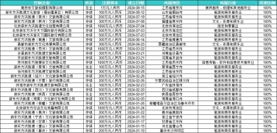 梳理這些公司信息,基本是2023年6月-2024年8月期間,由北京新東方沃凱德國際教育旅行有限公司在全國31個省市成立的文旅新公司,其中江蘇省最多,達到14個。