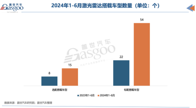 禾賽科技和速騰聚創的激光雷達出貨量大幅提升,源於市場上高階智駕的車型不斷增多。蓋世汽車研究院統計的數據顯示,今年上半年,標配激光雷達的車型數量多達54個,提供選配的車型也有15個,均爲去年的兩倍。