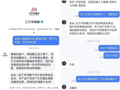 但有多名消費者反映稱,自己的退款申請遭到了官方拒絕。根據網友提供的截圖,三只羊網絡和美誠月餅給出的拒絕理由如出一轍,即“月餅屬於時令性特殊食品類目,不支持7天無理由退換貨服務”。