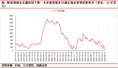 截至5月24日,账戶余額不足620億美元,已經大幅低於2022年2月財政部新的現金余額管理政策的要求(現金余額保持未來一周的現金需求,約5000-6000億美元)。