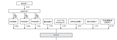 劉呈喜先生通過珠海恩圓、珠海富前、珠海股溫持股28.86%;騰訊持股7.55%;全球投資公司KKR通過Accel Asia Holdings II持股6.32%;雲鋒基金持股6.02%;湖北高質量持股5.13%;