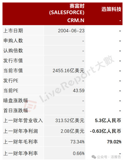 本次選取的同行業對比公司爲:賽富時(CRM.N)
