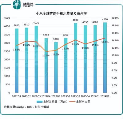 於今年一季度,小米全球智能手機出貨量爲4060萬台,同比增長33.7%,增幅遠超同期全球市場的9.8%,同時全球市佔率環比提升至13.8%;二季度則延續一季度勢頭,出貨量同比增28.1%至4220萬台,創下2021年四季度以來單季度新高,全球市佔率進一步提升至14.6%的高位。