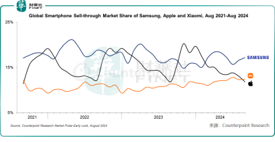 Counterpoint Research表示,隨着銷量的上升,iPhone 16系列的推出可能會推動蘋果在未來幾個月重新奪回第二名,甚至第一名的位置。