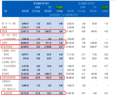 其中,除建築業、批發和零售業不良率分別較上年末減少1.81個百分點和1.65個百分點至2.32%、9.57%外,其他三行業不良率均有增長,制造業增0.57個百分點至4.99%、租賃和商務服務業增0.33個百分點至0.62%、水利、環境和公共設施管理業增0.04個百分點至0.05%。
