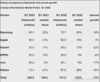 2023年,受消費信心不足、購买力疲軟等因素影響,全球智能手機市場需求呈現疲軟狀態。據Canalys數據,今年一季度全球智能手機銷量下滑了13.3%,而且目前市場回暖拐點還未出現。毫無疑問,小米正處於一個低谷期。