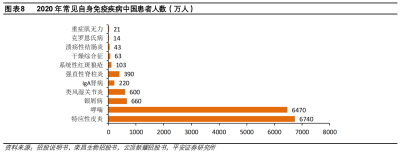 從患者數量看,美國總人口中約有20%是自身免疫性疾病患者,其中大部分是女性。在我國,自身免疫疾病已成爲除心血管疾病和癌症以外的第三大慢性病,患者規模較爲龐大,而且保持逐年增加的態勢。