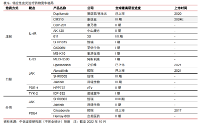 就銀屑病領域而言,在研管线的靶點類型涉及IL-12/23 p40、IL-17F/IL-17A、STAT3,JAK1等,研發進度靠前的藥企包括康方生物、華東醫藥/荃信生物、恆瑞醫藥、智翔金泰等。