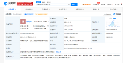 其中,安吉味央農業發展有限公司成立於2012年9月,注冊資本4000萬元,實繳比例100%,公司法人爲原新希望副總裁韓繼濤,經營範圍包括農作物種植、銷售,家畜、家禽養殖、銷售,原種豬的養殖和銷售等。