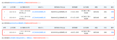 天眼查顯示,近日,浙江味央科技有限公司新增了3條股權凍結信息,凍結股權標的企業包括安吉味央農業發展有限公司、高安味央農業發展有限公司,凍結股權金額分別爲8784萬元、878萬元、4000萬元,合計達1.37億元。
