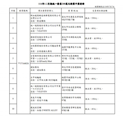 標題:最低花35元買杏仁茶就中1000萬 1-2月統一發票中獎清冊一次看